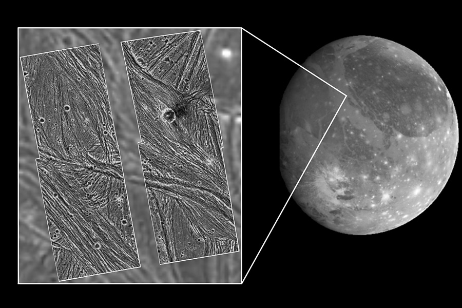 Immagine dettagliata della superficie di Ganimede presa dalla sonda Galileo