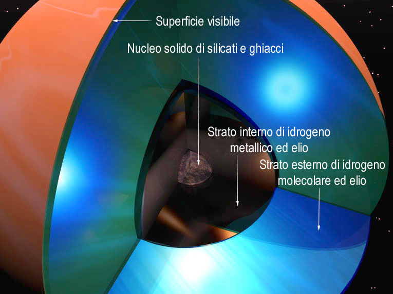 Disegno della struttura interna di Giove (ingrandisci questa immagine) |
