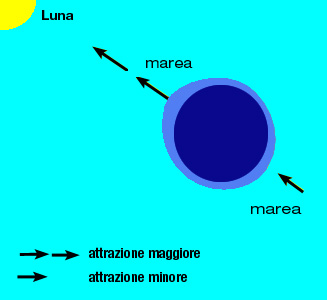 Luna rispetto alla Terra: anche se l'influenza solare sulle maree è