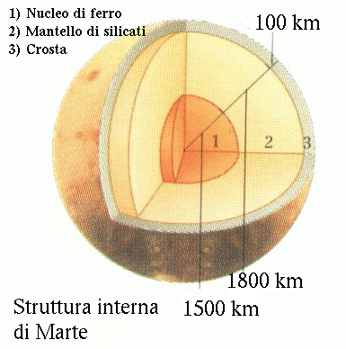 Poco si conosce dell'interno di Marte. Per sapere se esiste un nucleo ferroso, solido o liquido, occorrerebbe disporre di sismografi, situati sulla sua superficie, in grado di registrare i terremoti marziani. Si tratta di un esperimento che sarà tentato dalle future missioni spaziali.