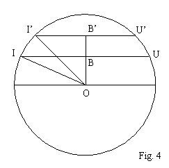 Nella figura 4 è rappresentato il disco solare con i due tracciati del transito I’U’ e IU, osservati, rispettivamente, dalle due postazioni A’ e A: