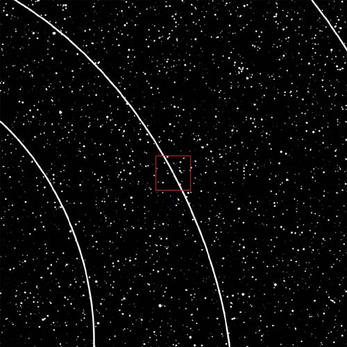 100.000.000.000 metri. Si pososno vedere parte delle orbite percorse dalla Terra e dai due pianeti ad essa più vicini, Venere all'interno (a sinistra) e Marte all'esterno (a destra dell'immagine).