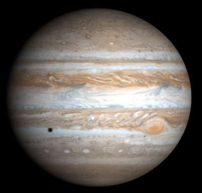 La gravità superficiale è 2.34 volte quella che si ha sulla Terra, la massa di Giove è 318 volte maggiore rispetto a quella terrestre, equivalente al 70% della massa complessiva di tutti gli altri corpi del Sistema Solare (escluso il Sole) ed infine il volume è 1.319 volte quello terrestre. Proprio la sua massa e distanza dal Sole consentono a Giove di trattenere nella sua atmosfera oltre all'elio anche l'idrogeno. Si ritiene che la composizione chimica dell'atmosfera sia la stessa della materia primordiale da cui nacque il Sistema Solare circa 4.5 miliardi di anni fa.