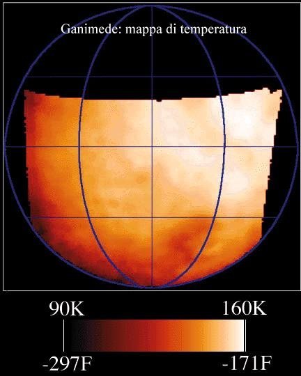 Ganimede è molto più freddo della Terra con temperature diurne