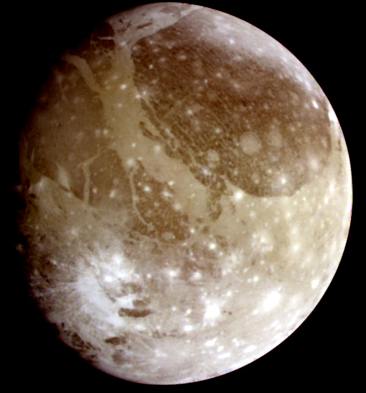 La regione scura è detta "Galileo Regio" di circa 3000 km di diametro,