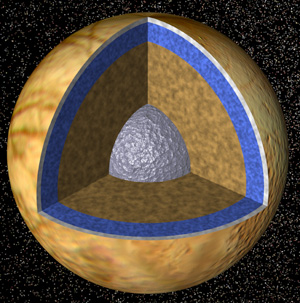 rivestito da una crosta di ghiaccio profonda un centinaio di km