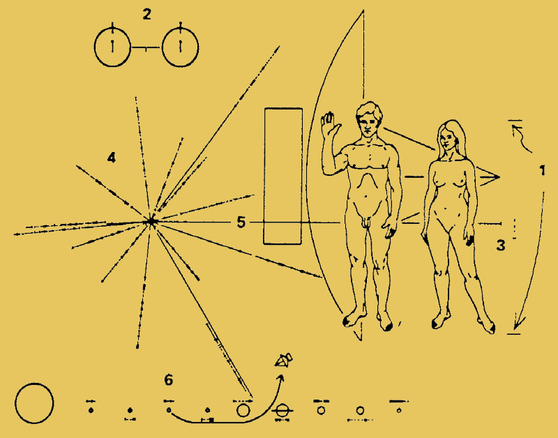 Su entrambe le sonde è stata fissata all'esterno una targa, studiata dall'astronomo Carl Sagan, che conteneva immagini e simboli utilizzabili da possibili extraterrestri per capire da dove erano partite le sonde. Pioneer 10 attualmente è proiettata nella direzione di Proxima Centauri che raggiungerà tra 26135 anni.