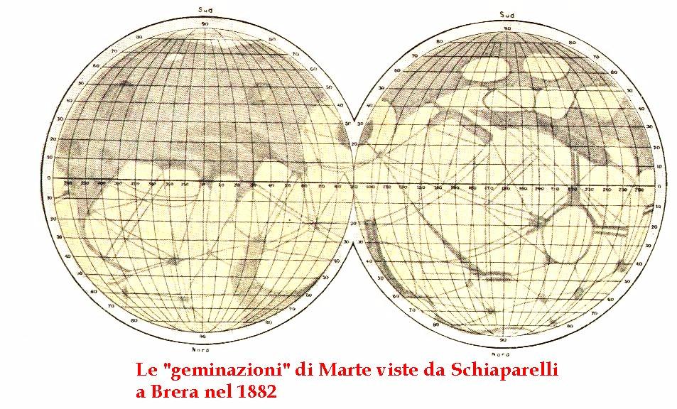Con la grande opposizione del 1877, Schiaparelli ed i canali di Marte diventarono i protagonisti assoluti. Le carte di Marte tracciate dall'astronomo italiano costituiscono un autentico progresso poichè non sono più basate solo su disegni ma riferite a numerosissime misure anche se introducono eccessive schematizzazioni. Nel 1881-82 egli disegnò una rappresentazione più realistica delle macchie scure, ma intanto i canali venivano disegnati con la tipica forma sottile e rettilinea che tanto fece pensare al risultato di opere artificiali.