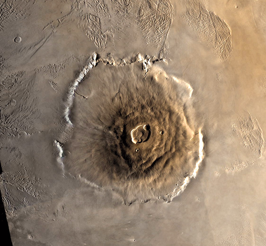 Marte, pur avendo solo una volta e mezza le dimensioni della Terra, ha alcuni vulcani che superano in dimensioni ed altezza i maggiori vulcani terrestri. I più massicci vulcani di Marte sono collocati in due regioni: