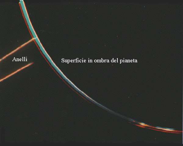 di taglio degli anelli di Saturno con due dei suoi satelliti